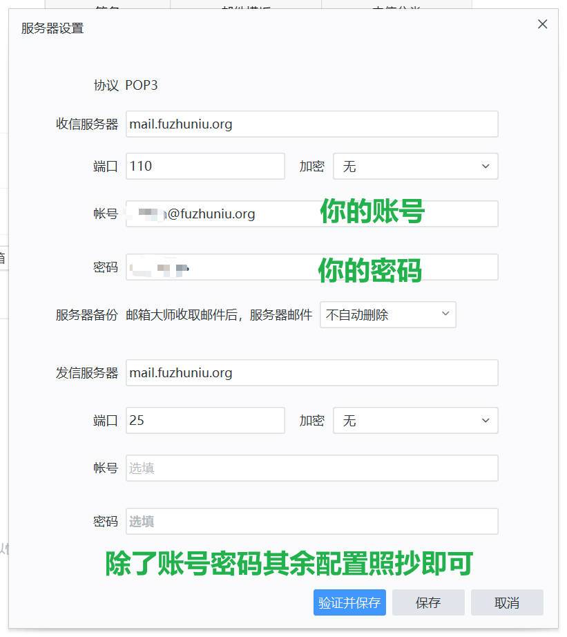 邮箱也支持各种第三方邮箱软件登录,方便你收取验证码.不用再跑去网页里登录! 以网易邮箱大师举例,配置如下图
