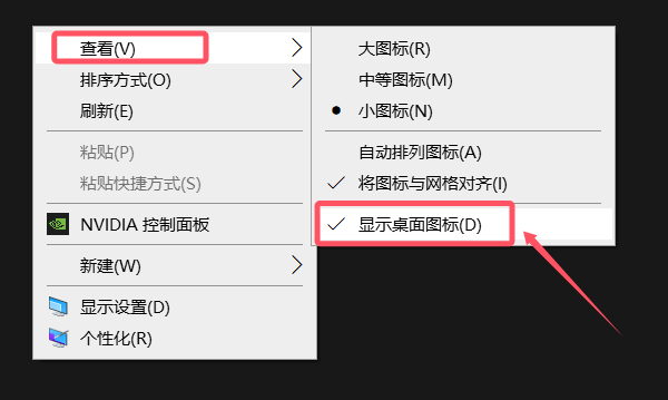 桌面右键选择查看,将显示桌面图标前的勾取消掉
