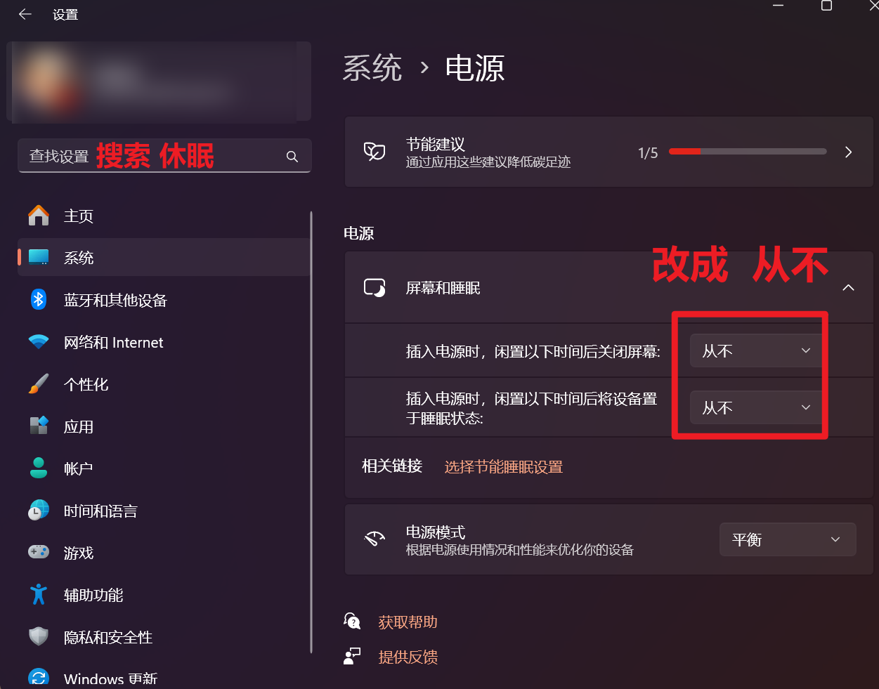 3.主机和副机都改成永不休眠