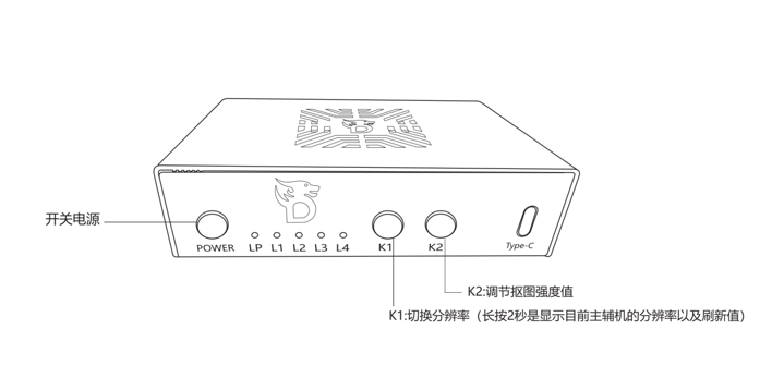 K2-切换融合状态(短按) , 长按进入抠图强度值