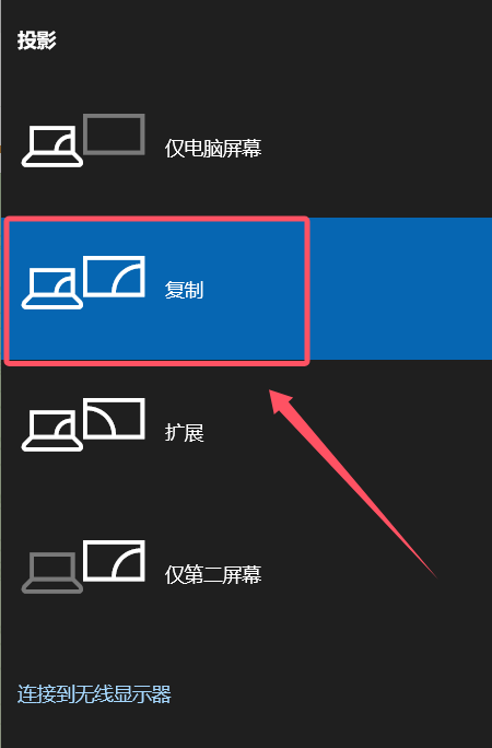 2.副机操作Win+P,投影方式选择为复制;