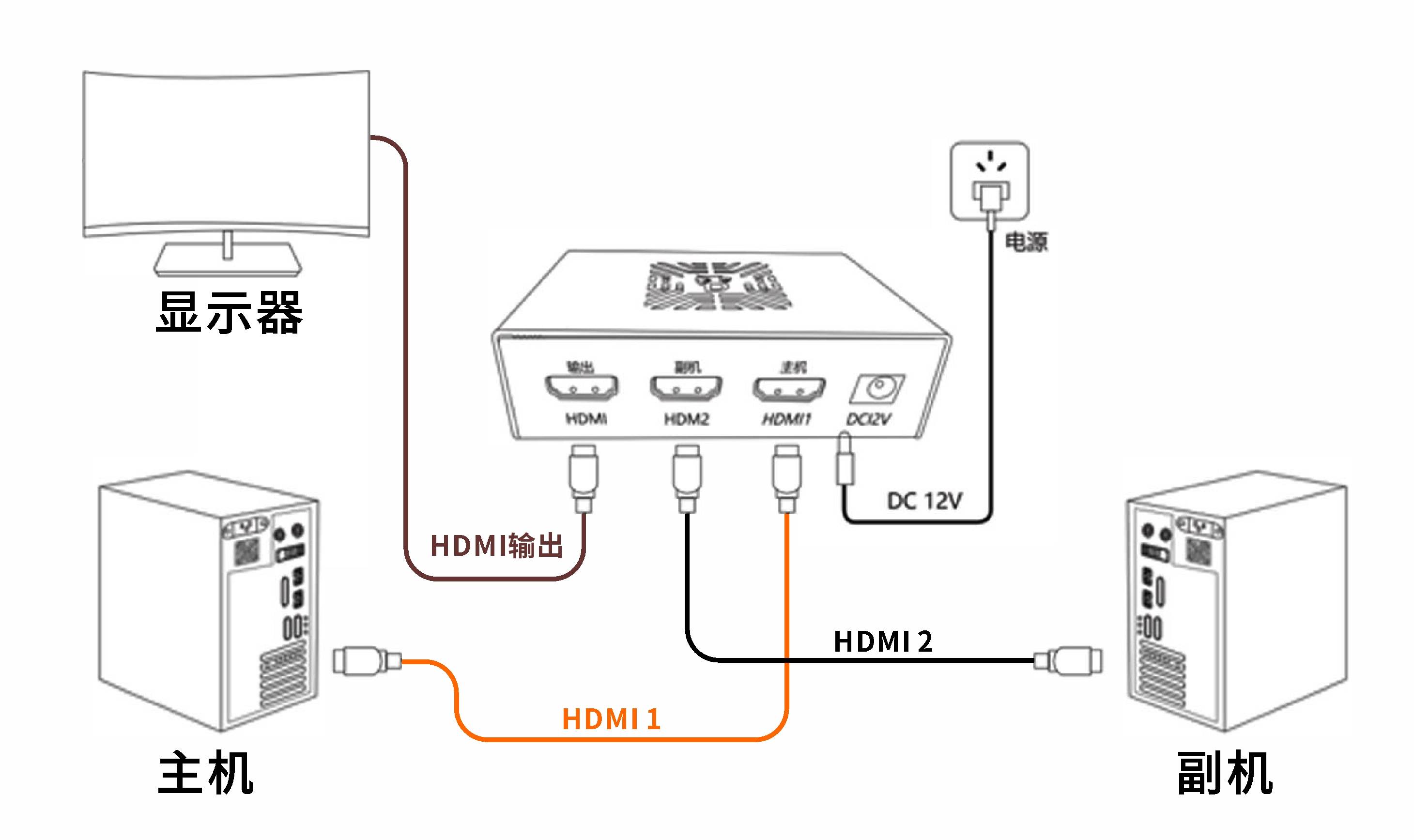 HDMI2为副机接口,连接至你的副机显卡HDMI接口
