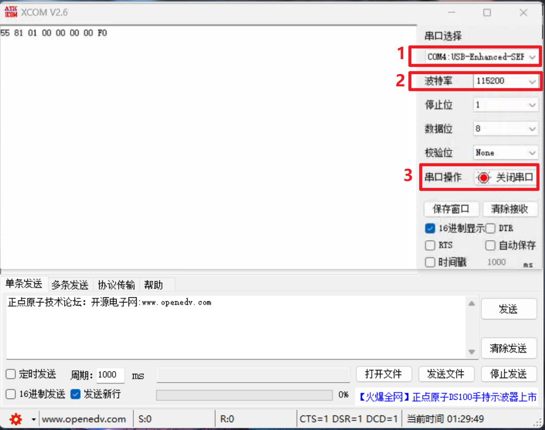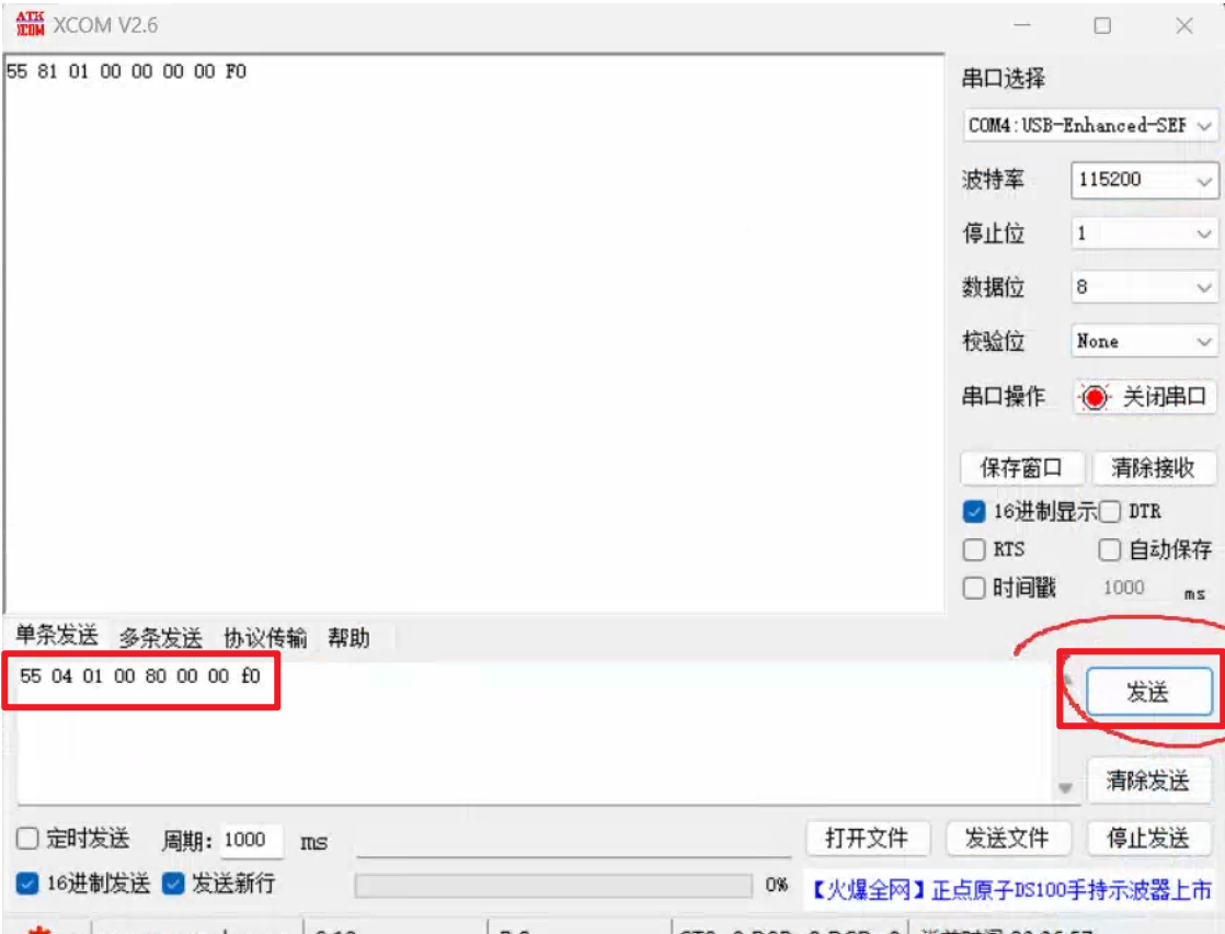 4.输入烧录指令,同时选择好bin文件路径后,点击发送开始烧录