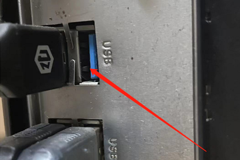 先接线按图连接好USB线,往电脑上的蓝色的USB3.0接口上插