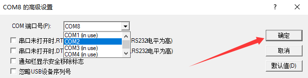 (2)选择任意一个低于10的COM端口,然后按OK保存;自己要记住这个 参数,开科技使用自瞄时要把参数写进软件里!