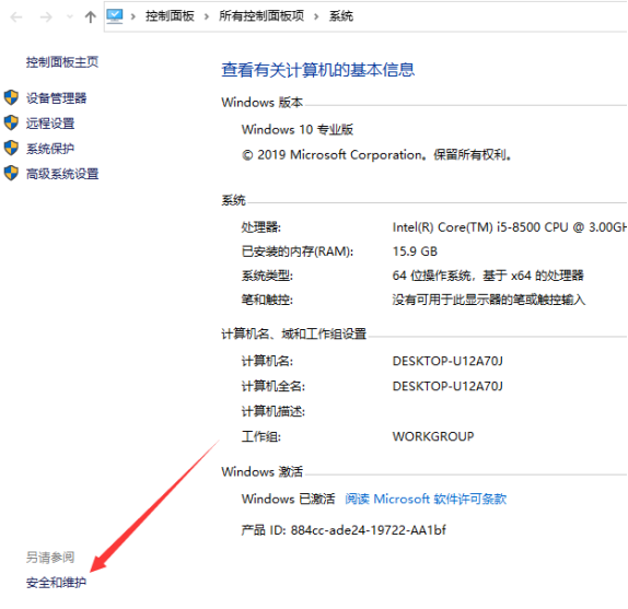 2.点击安全与维护;