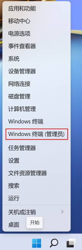 1.右键点击微软图标,选择“Windows 终端 (管理员)”(或在任务栏搜索“Windows PowerShell (管理员)”并打开)。在弹出的提示框“你要允许此应用对你的设备进行修改吗?”中选择“是”;