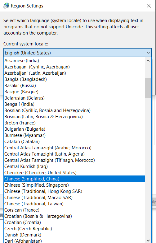 5.在下拉菜单中选择Chinese(Simplified,China)