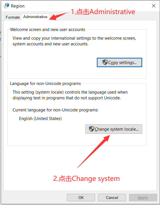 4.在Administrative中点击Change system locale...