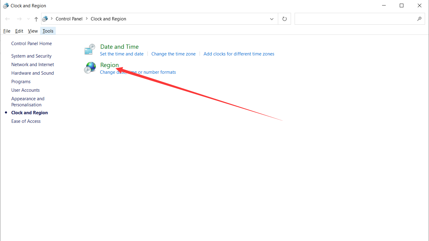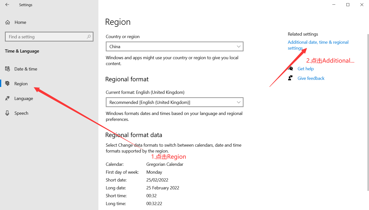 2.先点击左侧Region,再点击右侧Additional date,time®ional settings;