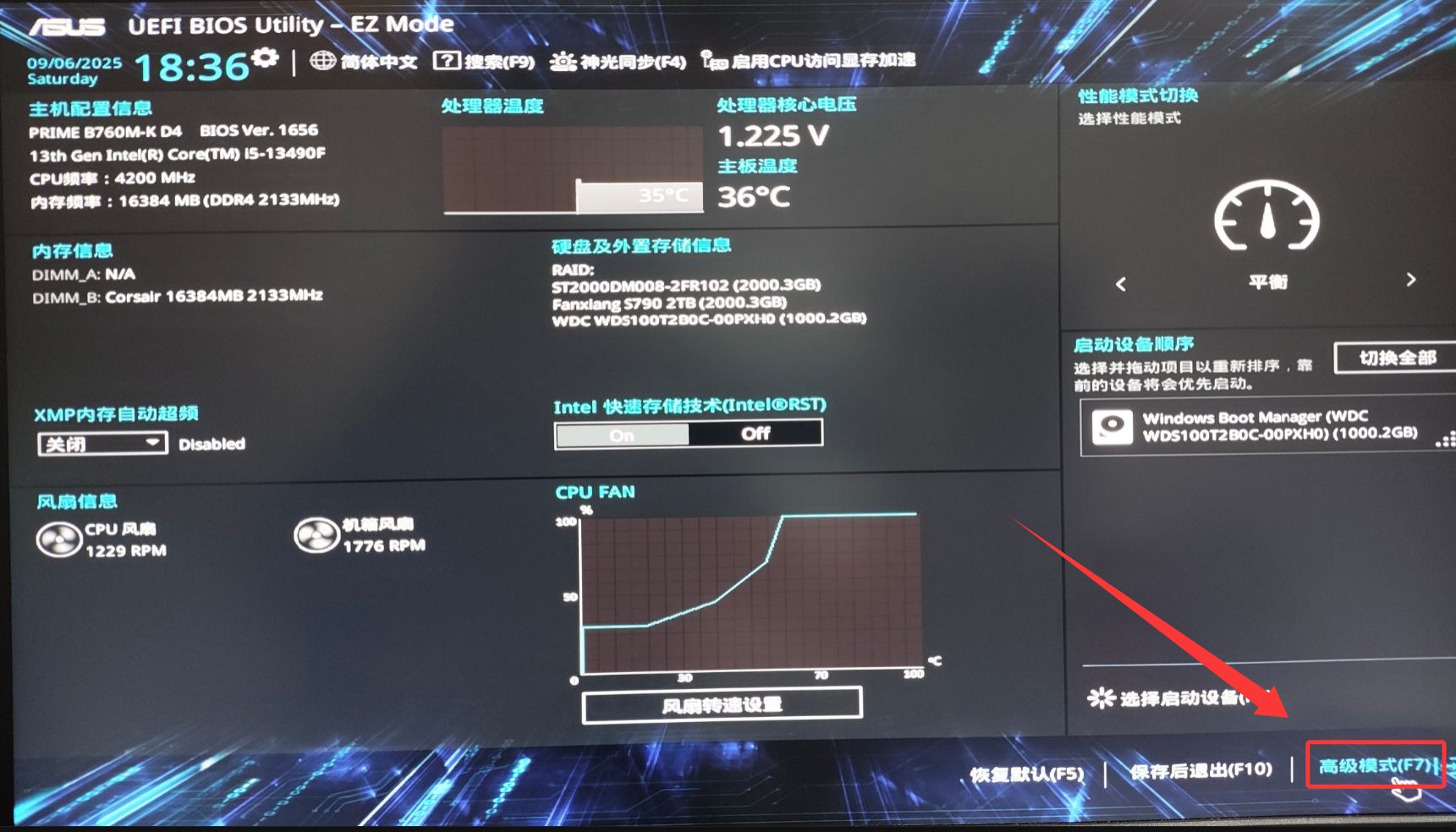 2.F7进入Advanced(高级模式);